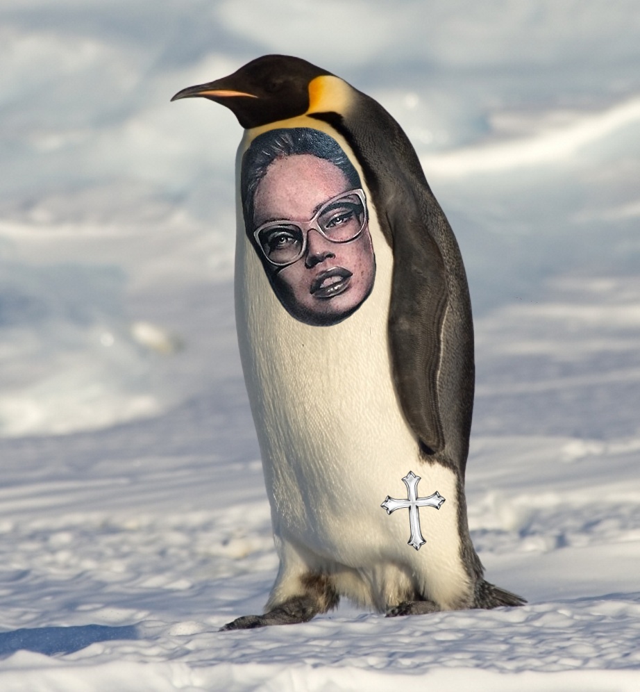 Look at this fucking hipster emperor penguin. As if the ironic cross wasn’t enough, it got a HUGE hipster chick’s face tattooed across its chest. If only Williamsburg was cool enough to haves ice shelves…