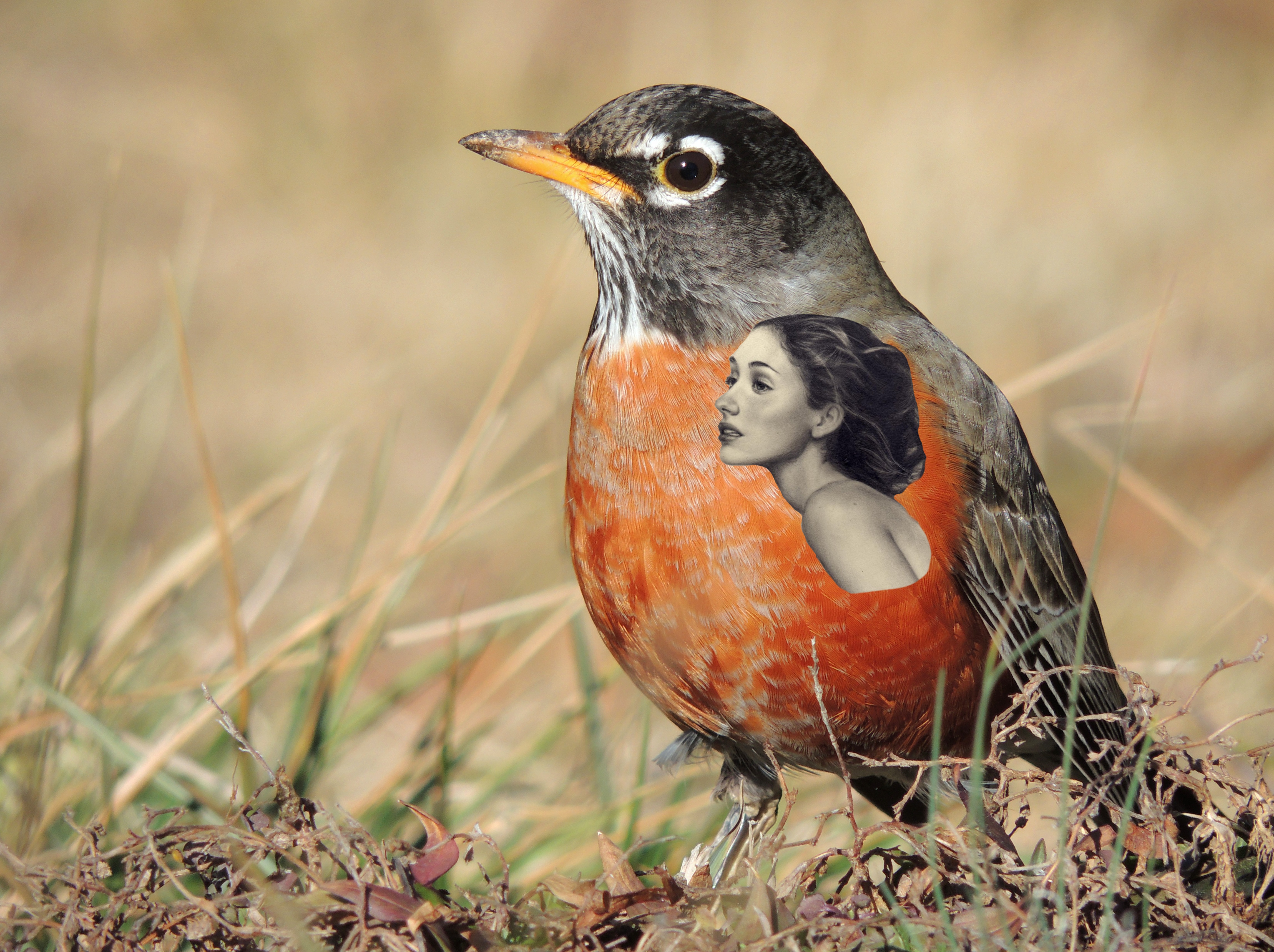Red breasted robins are a dime a dozen, but you don’t see many with black and white tattoos of gorgeous young women. This bird is such an original!